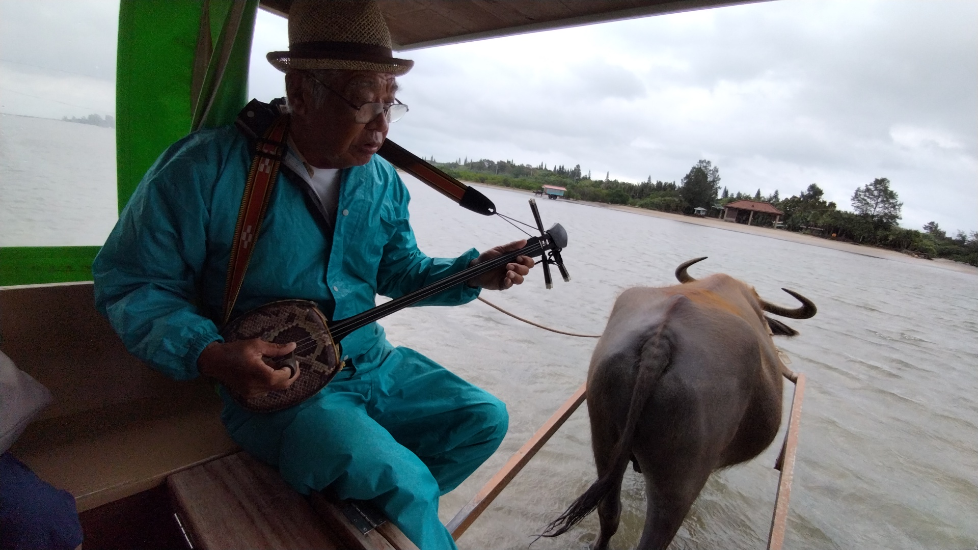 由布島まで約400mの浅瀬の海を水牛車でのんびりと渡ります。